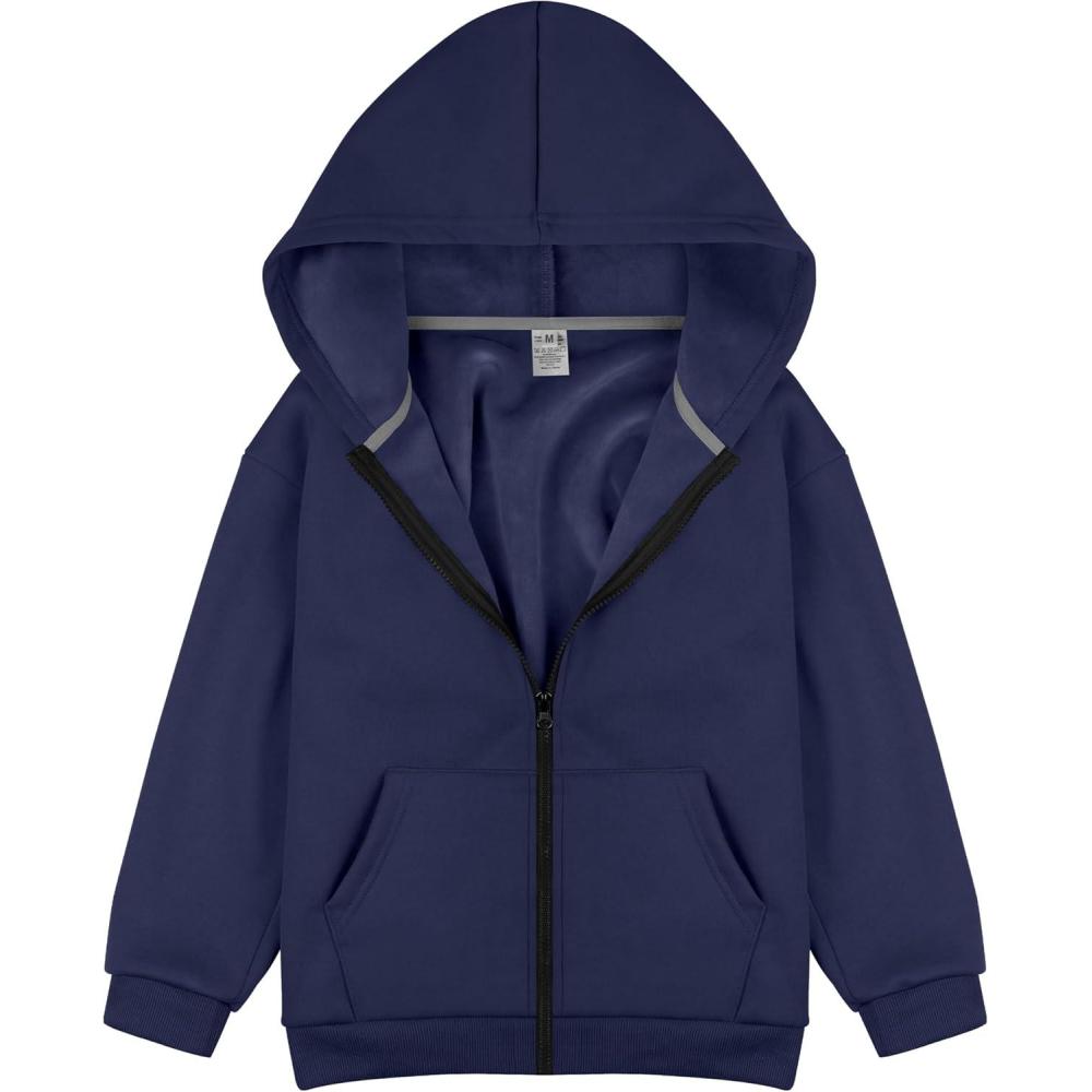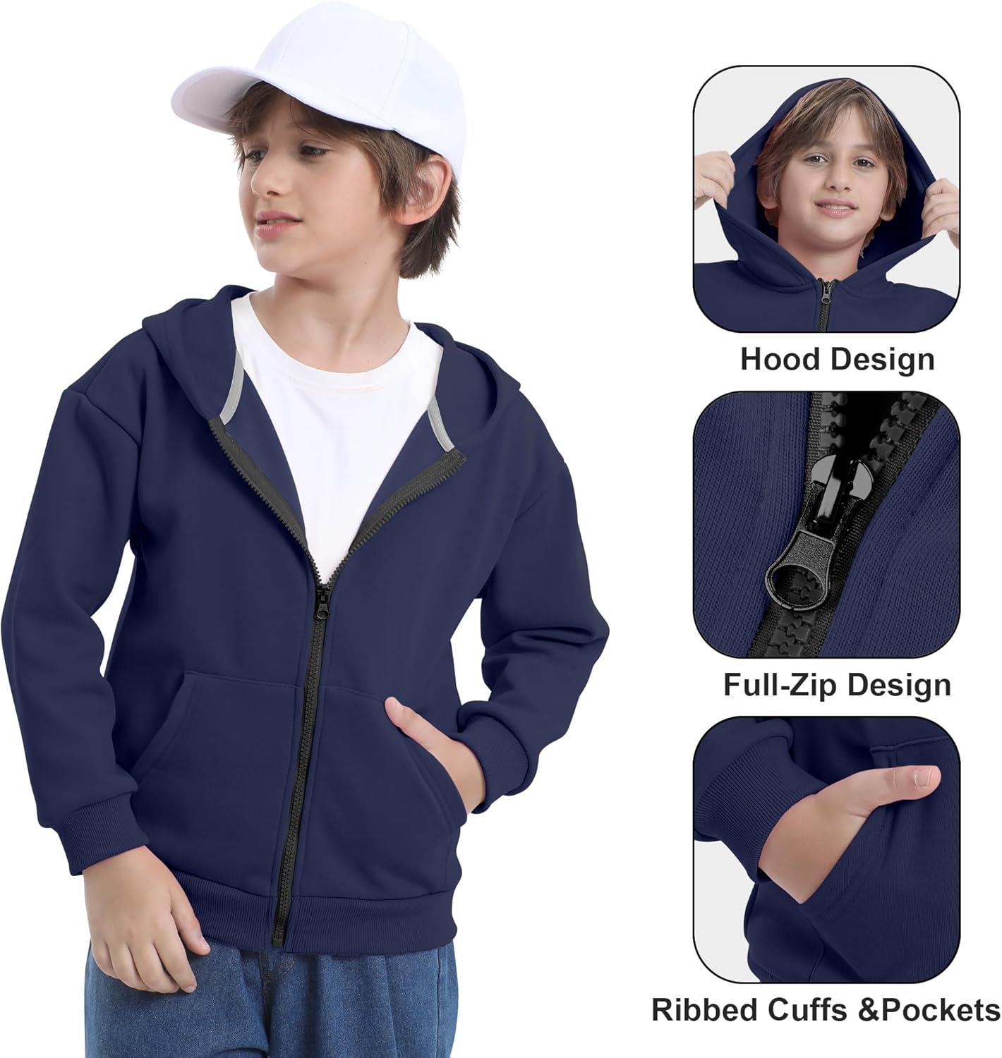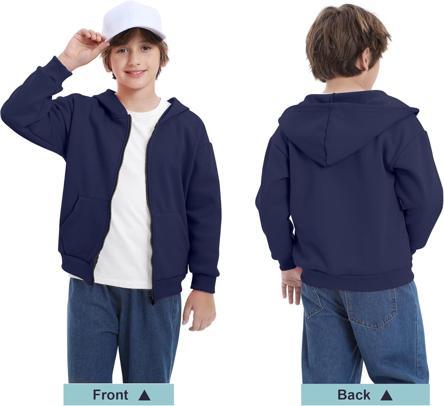 BIG ELEPHANT Boys’ Fleece Zip Up Hoodie Sweatshirt with Kangaroo Pockets – Soft Cotton Jacket for School & Everyday Wear(Navy Blue)