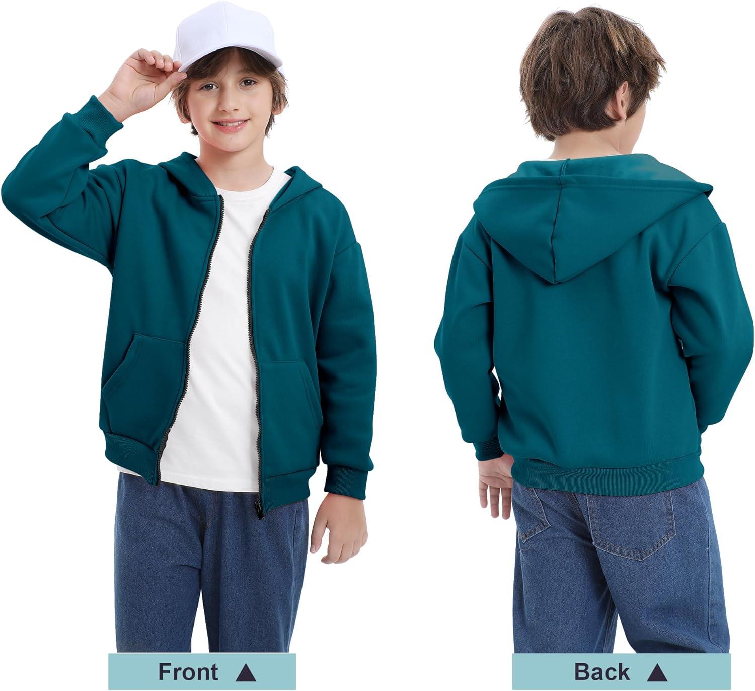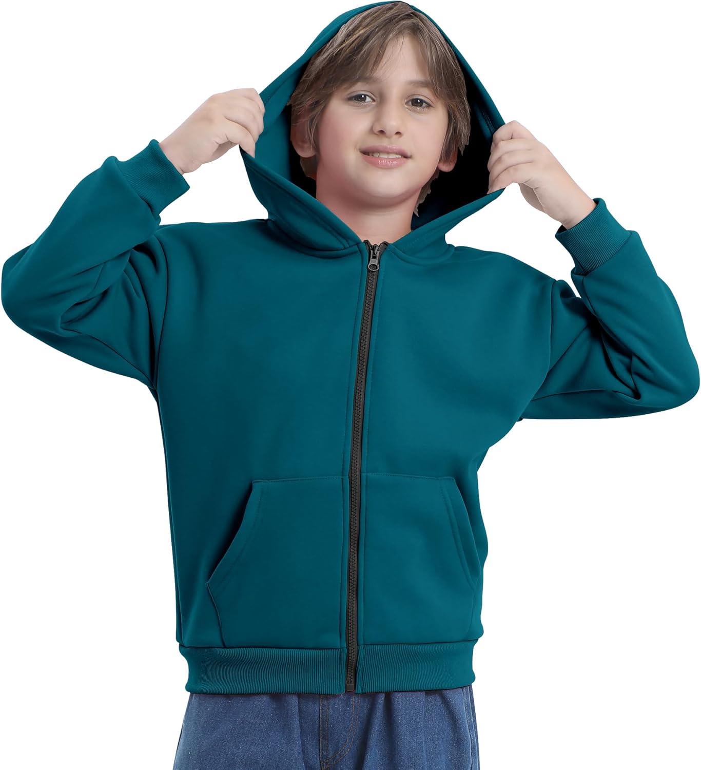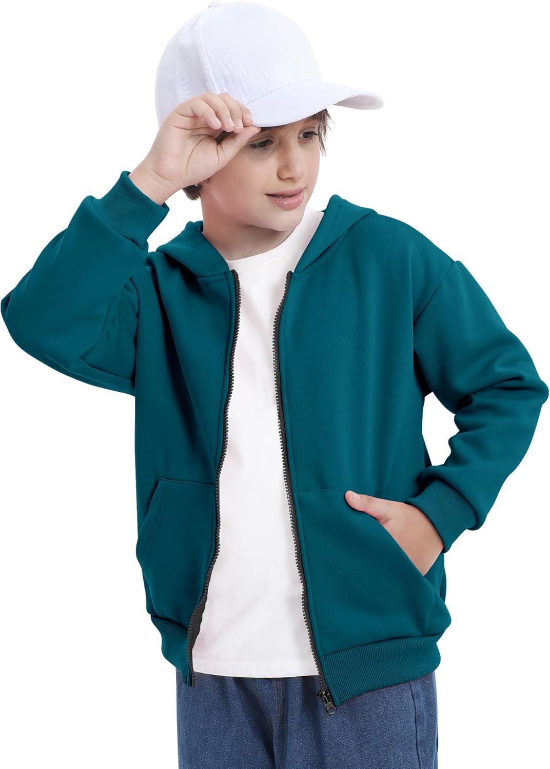BIG ELEPHANT Boys’ Fleece Zip Up Hoodie Sweatshirt with Kangaroo Pockets – Soft Cotton Jacket for School & Everyday Wear(Peacock Blue)