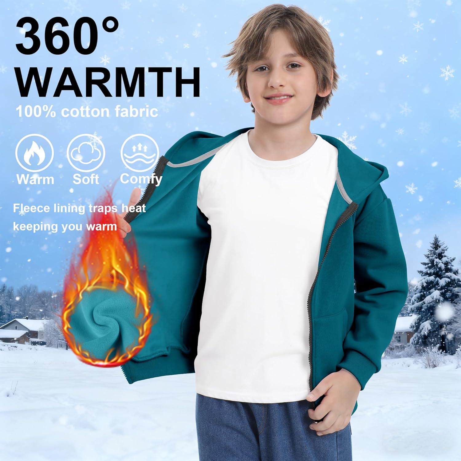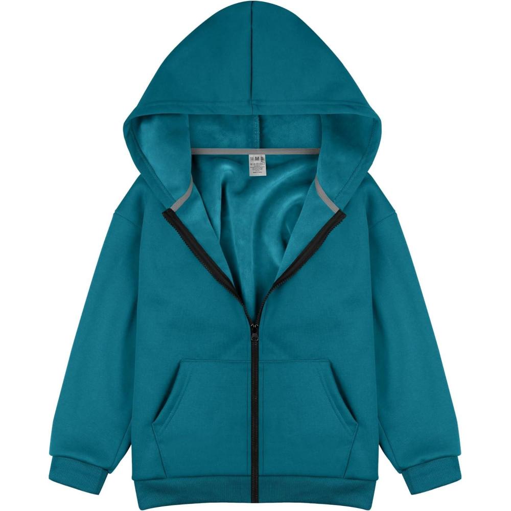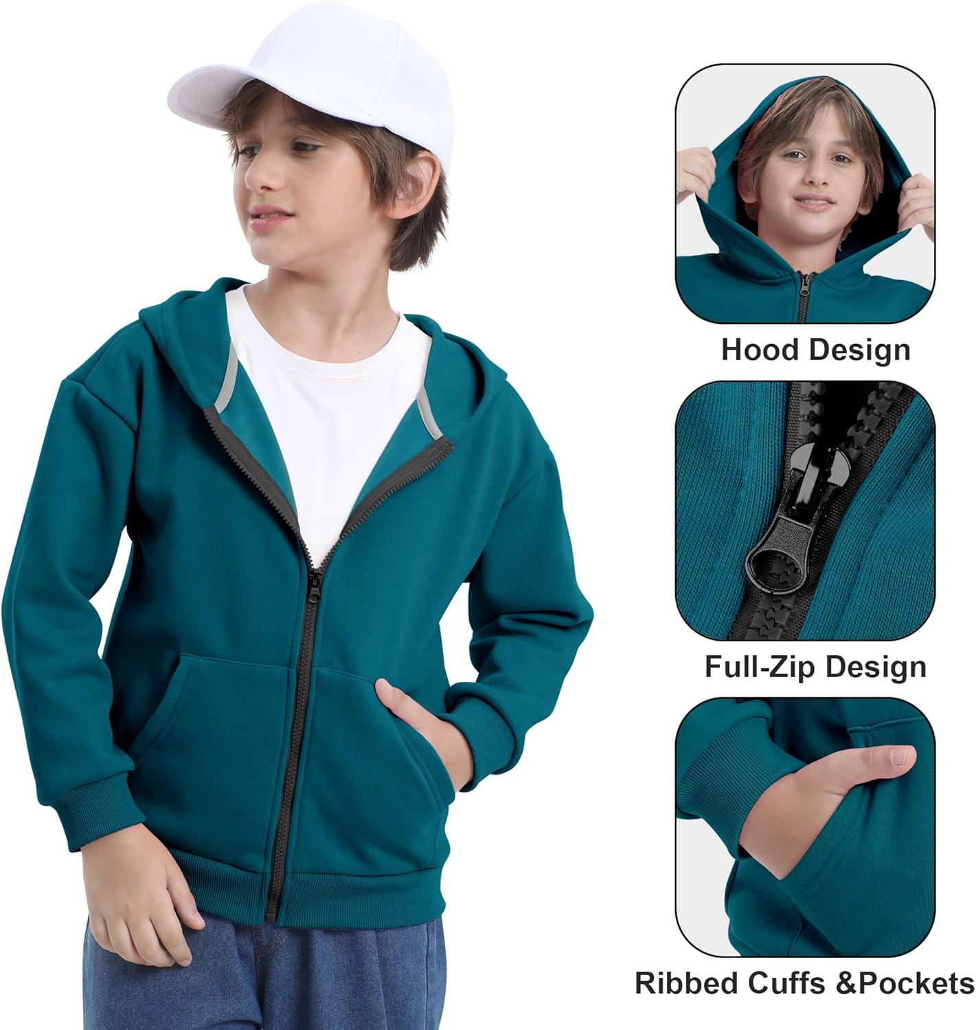 BIG ELEPHANT Boys’ Fleece Zip Up Hoodie Sweatshirt with Kangaroo Pockets – Soft Cotton Jacket for School & Everyday Wear(Peacock Blue)