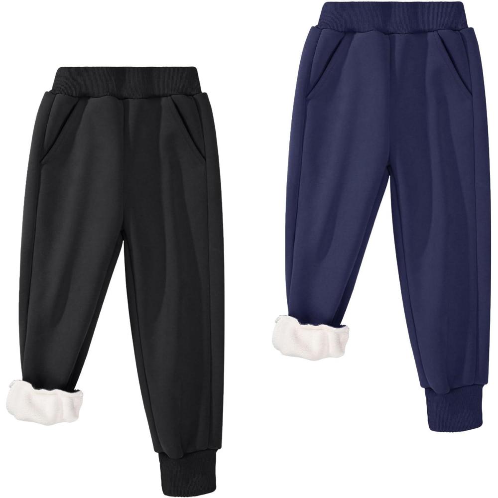 BIG ELEPHANT Boys Girls Fleece Lined Sweatpants, Winter Warm Soft Cotton Elastic Waist Kids Jogger Pants with Pockets(Black With Navy Blue 2-pack)