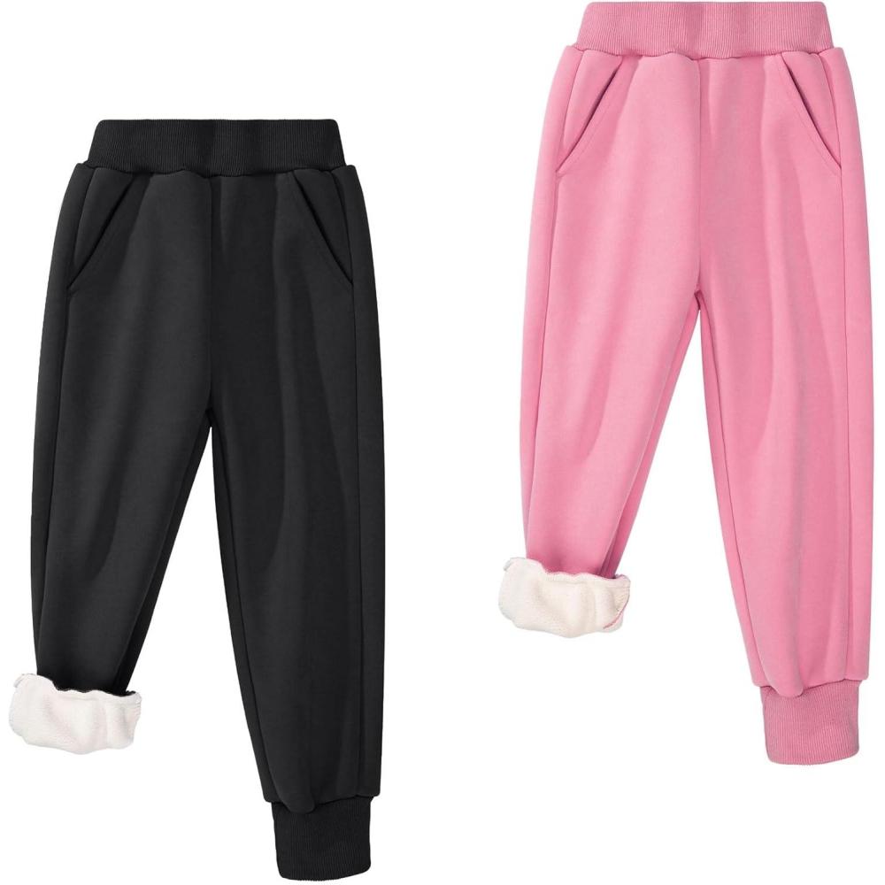 BIG ELEPHANT Boys Girls Fleece Lined Sweatpants, Winter Warm Soft Cotton Elastic Waist Kids Jogger Pants with Pockets(Black With Pink 2 Pack)