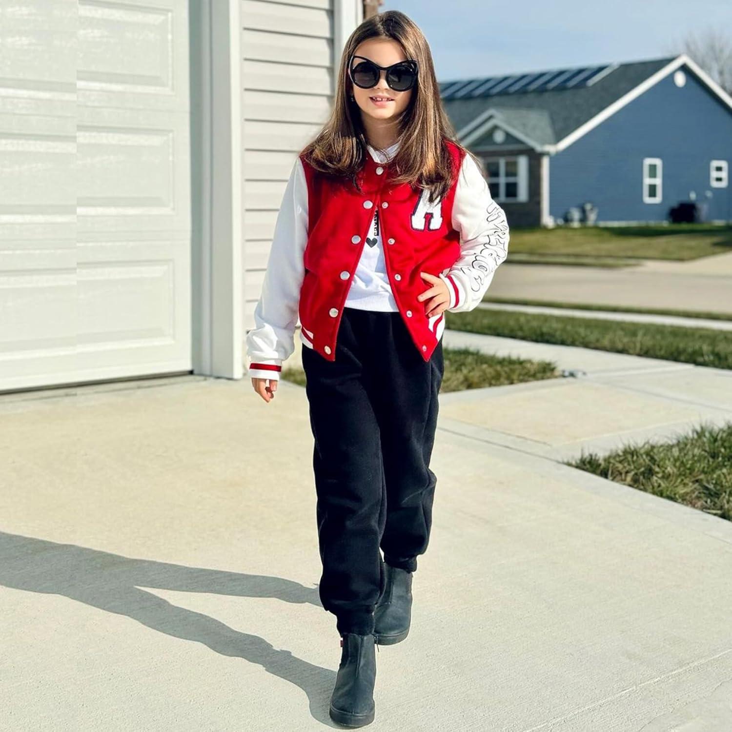 BIG ELEPHANT 3 Pack Girls Joggers with Pockets, High Waisted Kids Athletic Pants for Yoga Running(Red+black+navy Blue)