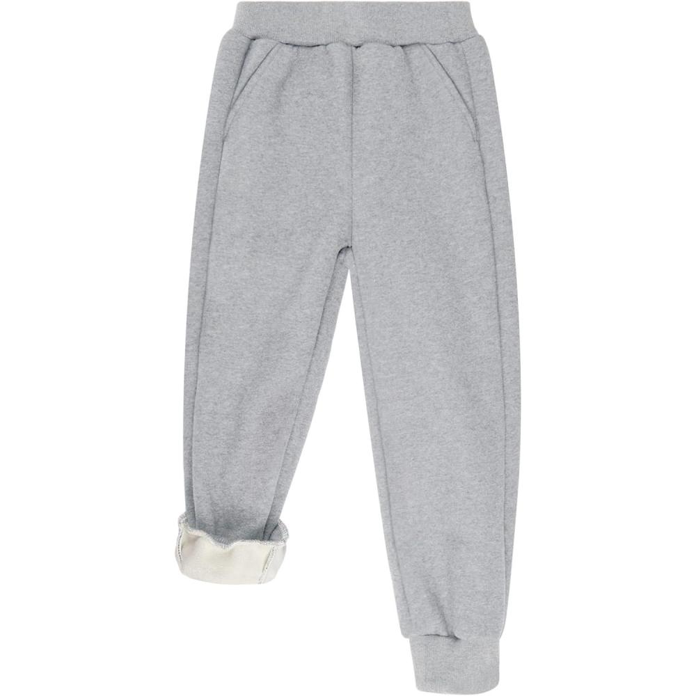 BIG ELEPHANT Boys Girls Fleece Lined Sweatpants, Winter Warm Soft Cotton Elastic Waist Kids Jogger Pants with Pockets(Light Gray)