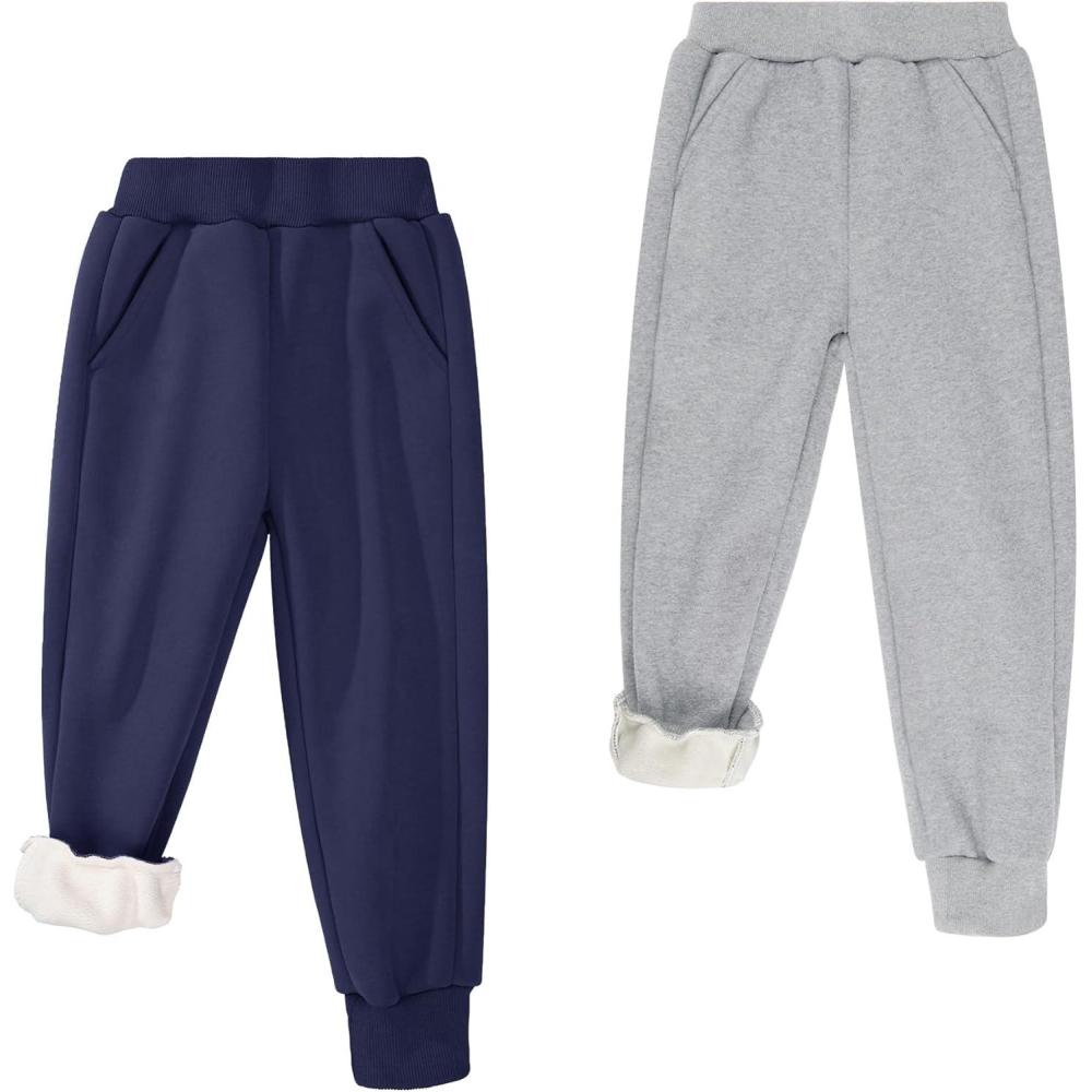 BIG ELEPHANT Boys Girls Fleece Lined Sweatpants, Winter Warm Soft Cotton Elastic Waist Kids Jogger Pants with Pockets(Navy Blue With Light Gray 2 Pack)