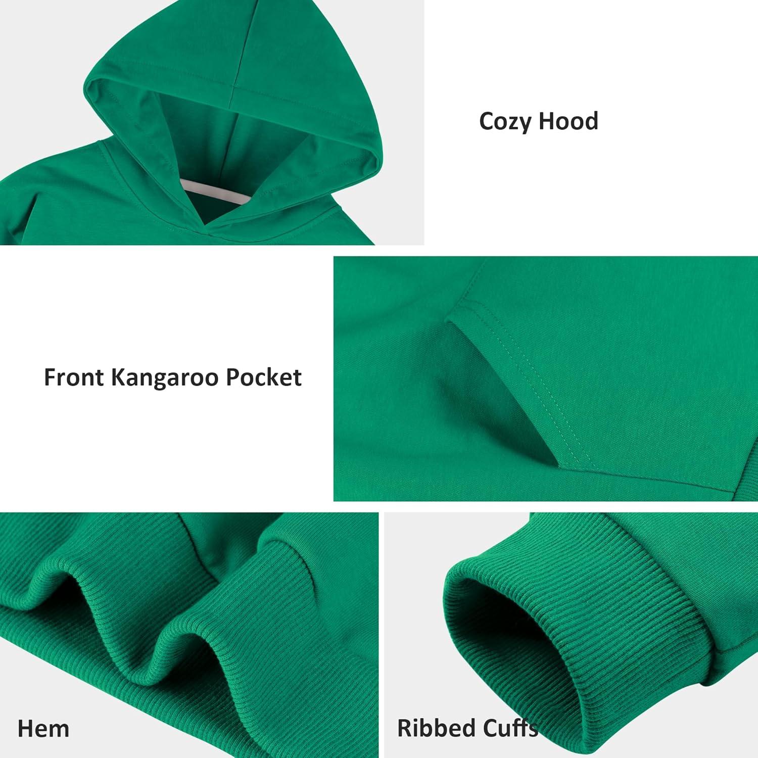 BIG ELEPHANT Boys’ Hooded Sweatshirt – 100% Cotton,Lightweight Long Sleeve Hoodie with Pocket for School & Casual Wear(Green)