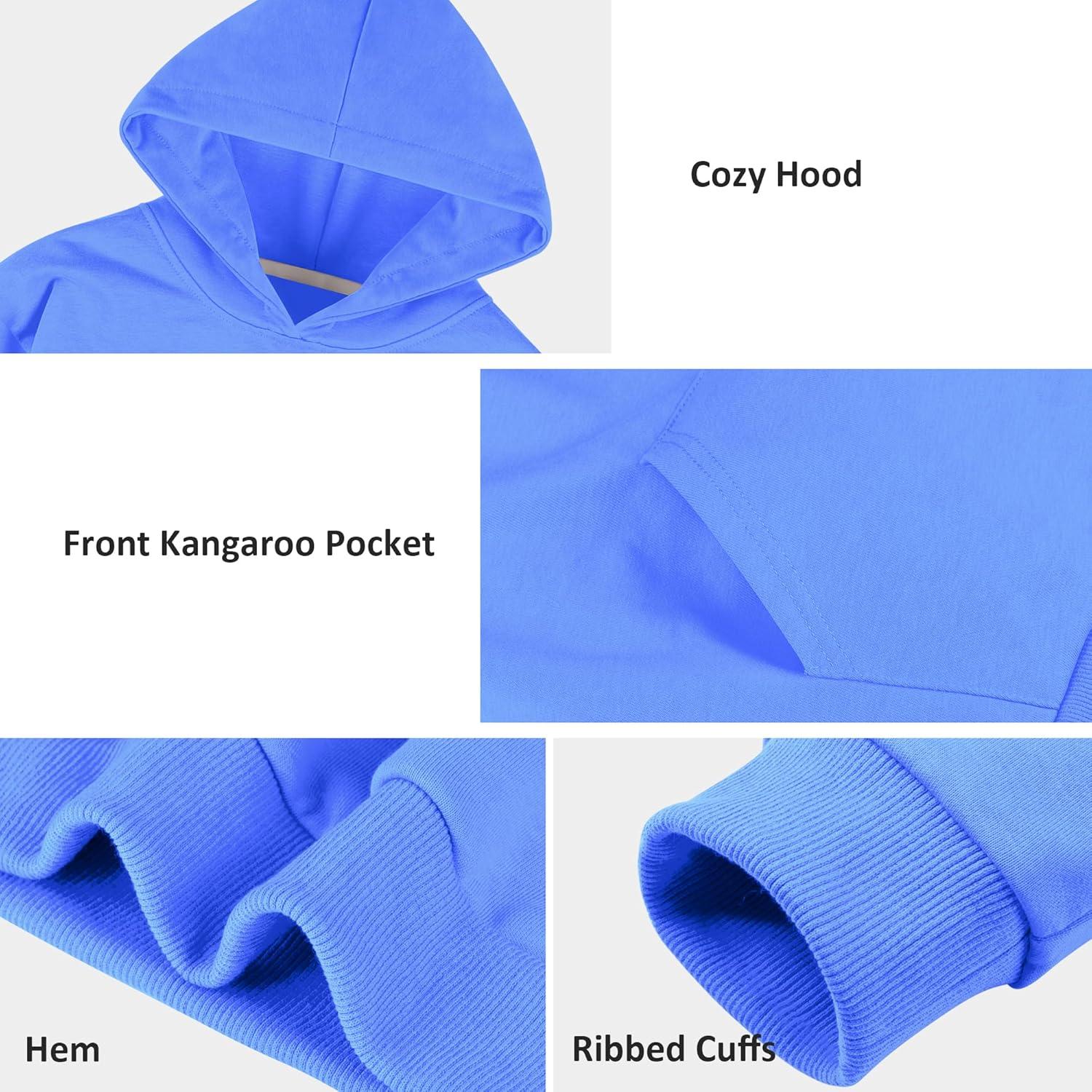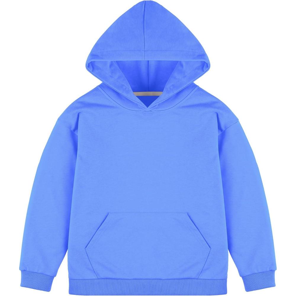 BIG ELEPHANT Boys’ Hooded Sweatshirt – 100% Cotton,Lightweight Long Sleeve Hoodie with Pocket for School & Casual Wear(Sapphire Blue)