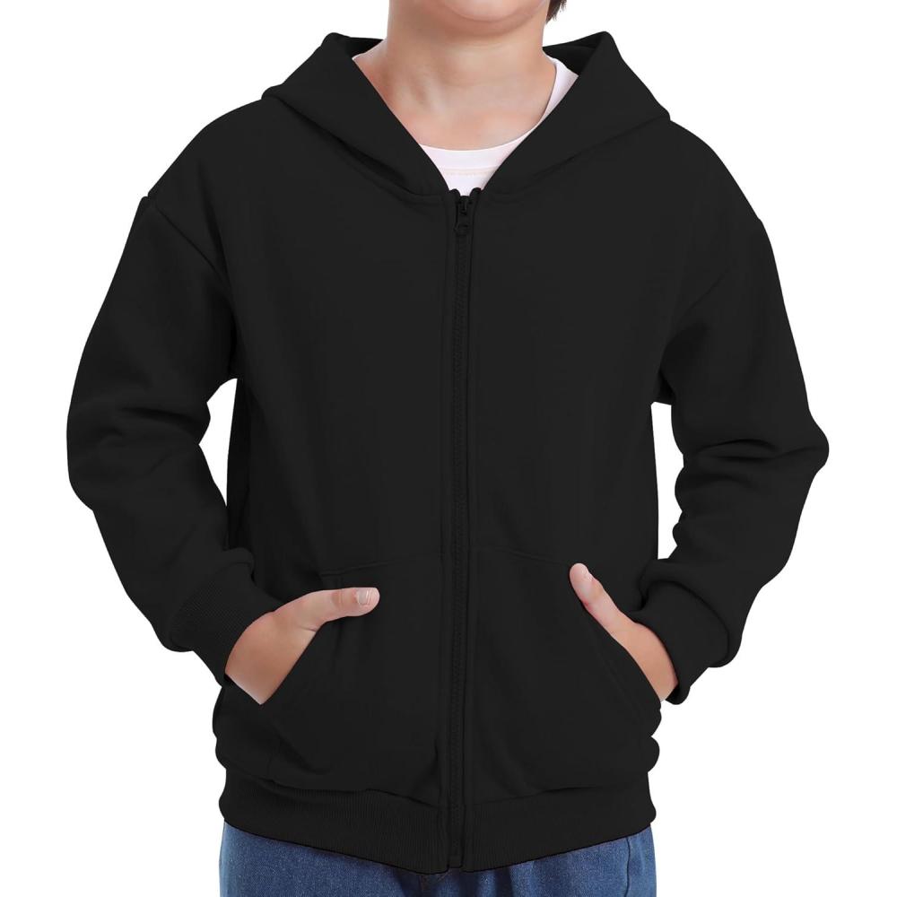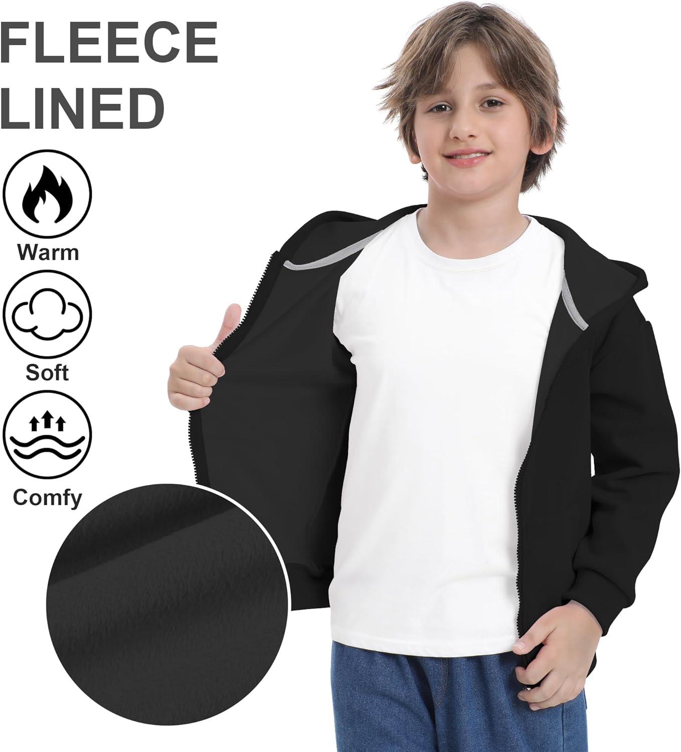 BIG ELEPHANT Boys' Zip Up Hoodie Sweatshirt with Pockets, Fleece & Soft Cotton Coat for School and Daily Wear(Black)