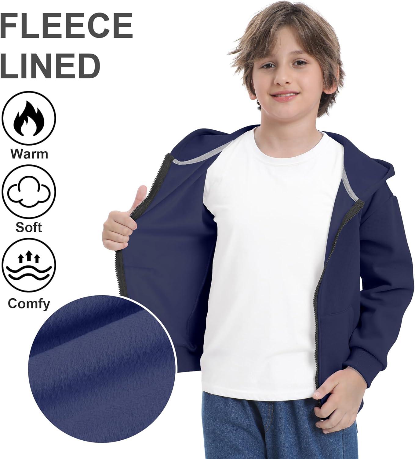BIG ELEPHANT Boys' Zip Up Hoodie Sweatshirt with Pockets, Fleece & Soft Cotton Coat for School and Daily Wear(Navy Blue)