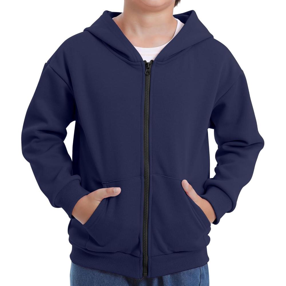 BIG ELEPHANT Boys’ Zip Up Hoodie Sweatshirt with Pockets, Fleece & Soft Cotton Coat for School and Daily Wear(Navy Blue)