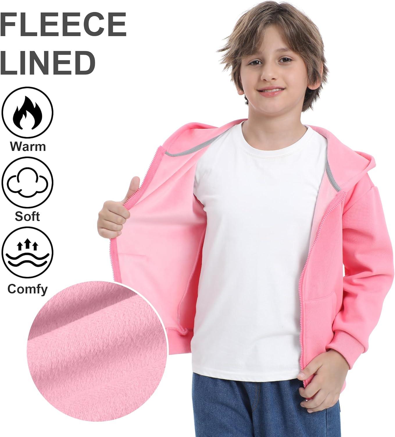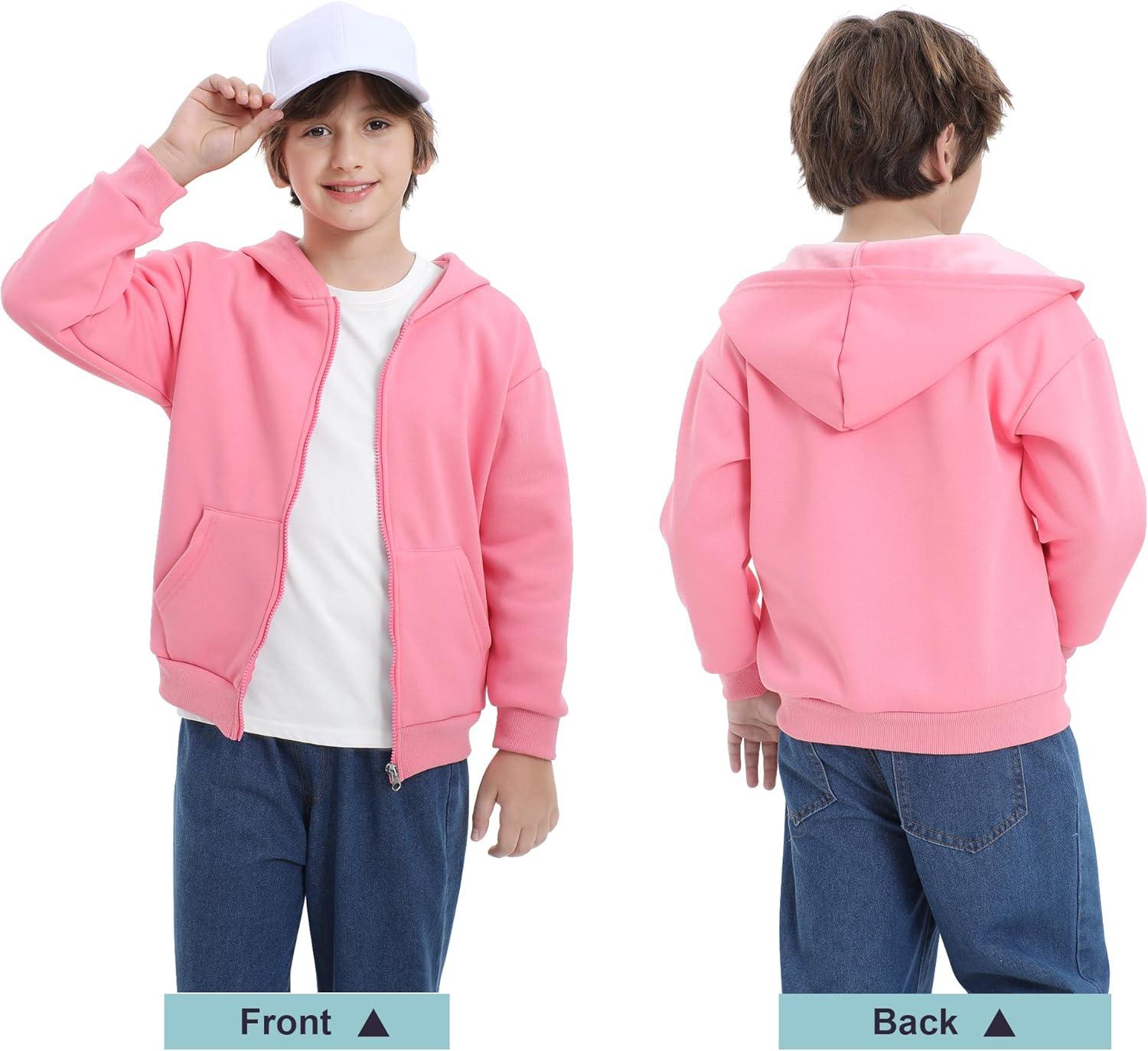 BIG ELEPHANT Boys’ Zip Up Hoodie Sweatshirt with Pockets, Fleece & Soft Cotton Coat for School and Daily Wear(Pink)