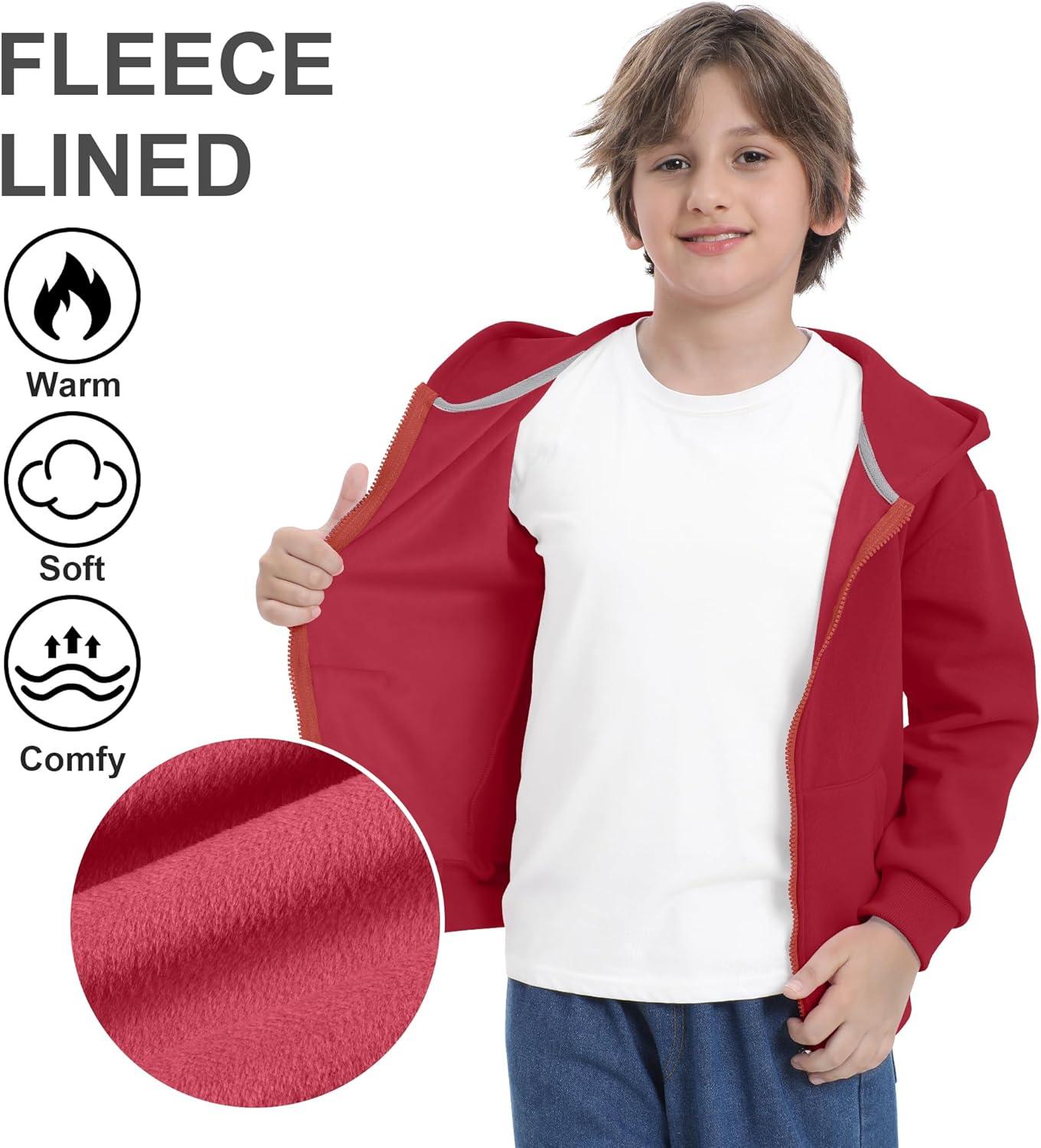 BIG ELEPHANT Boys’ Zip Up Hoodie Sweatshirt with Pockets, Fleece & Soft Cotton Coat for School and Daily Wear(Red)