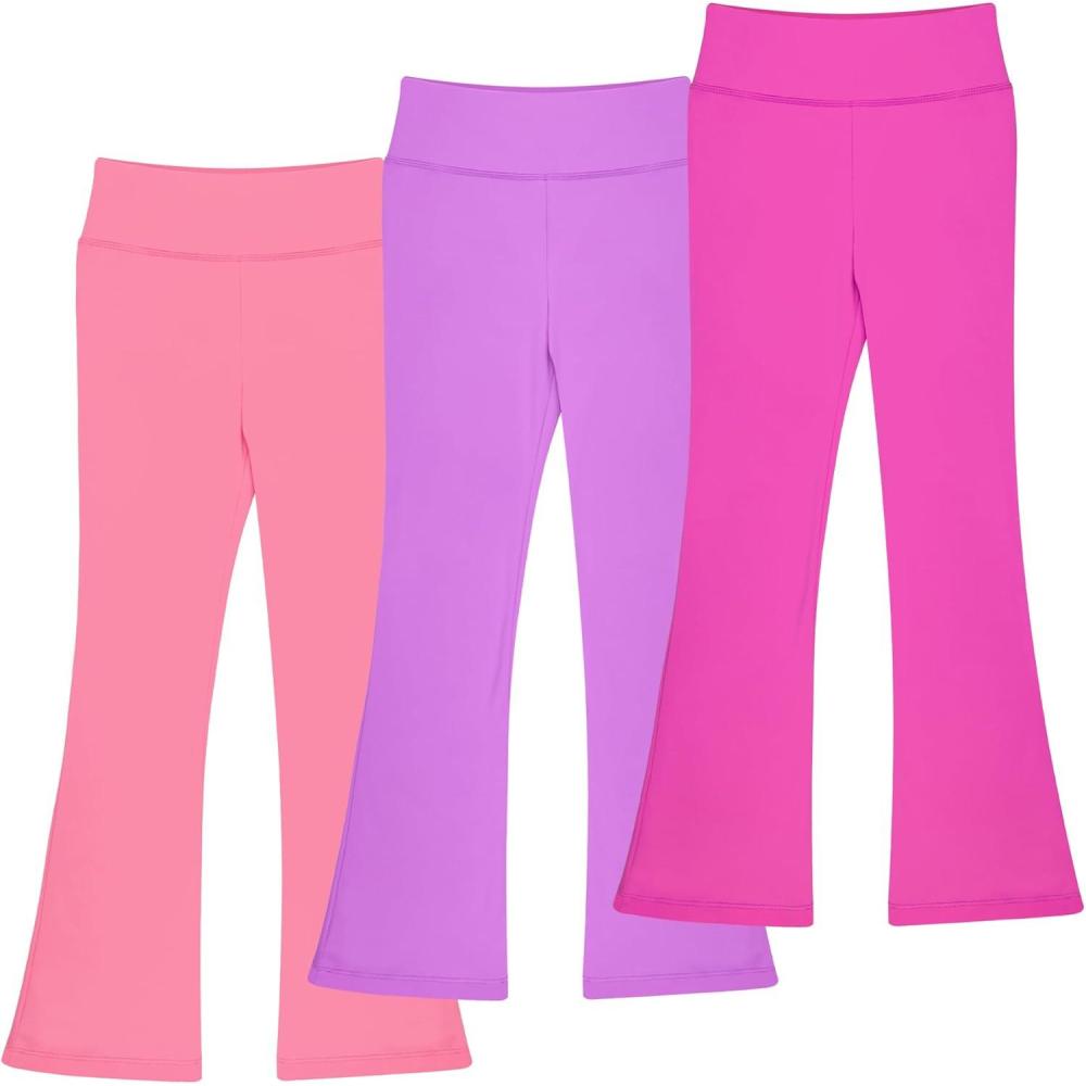 BIG ELEPHANT Girls Flare Leggings Kids Bell Bottoms High Waisted Bootcut Yoga Dance Flared Pants(Pink/Purple/Khaki)