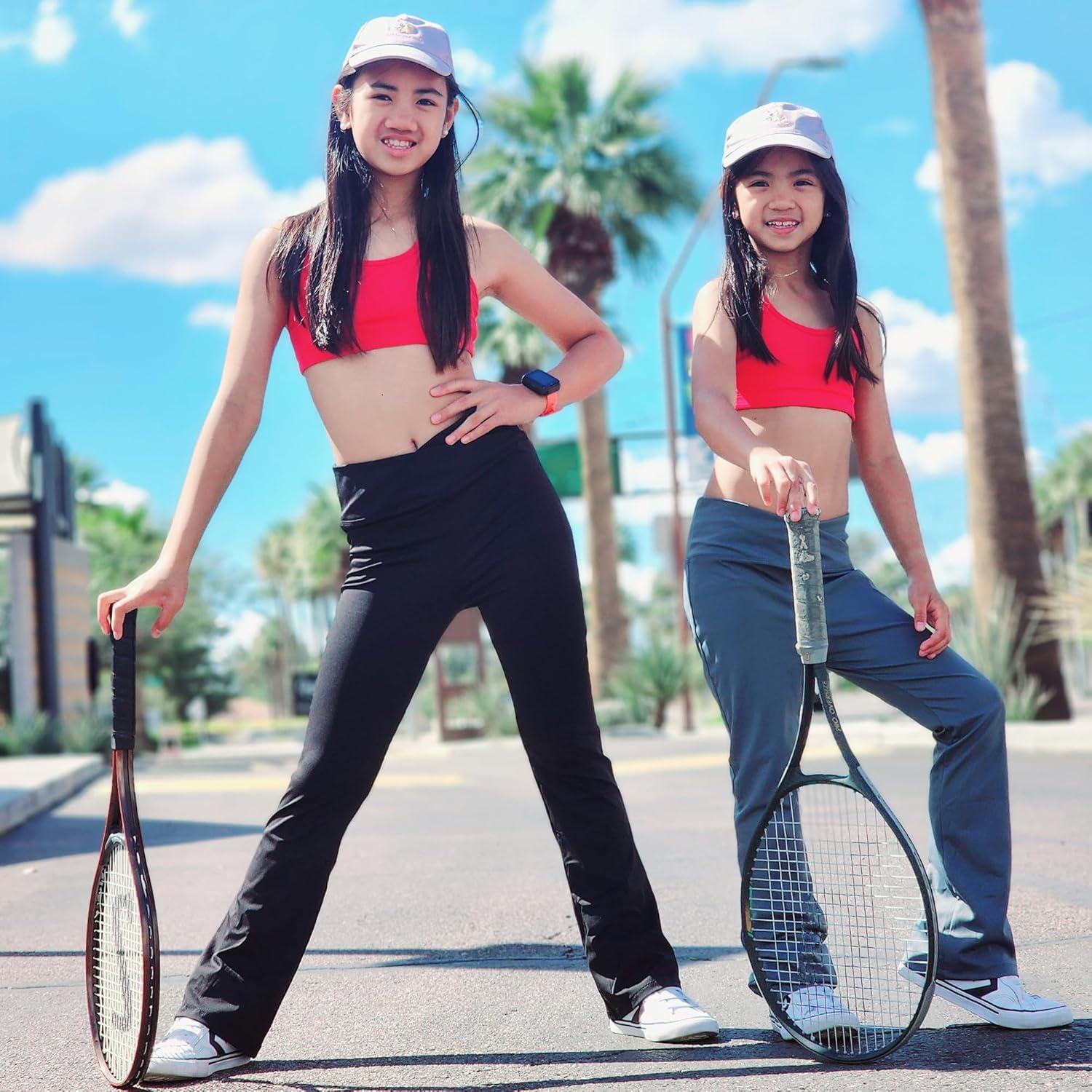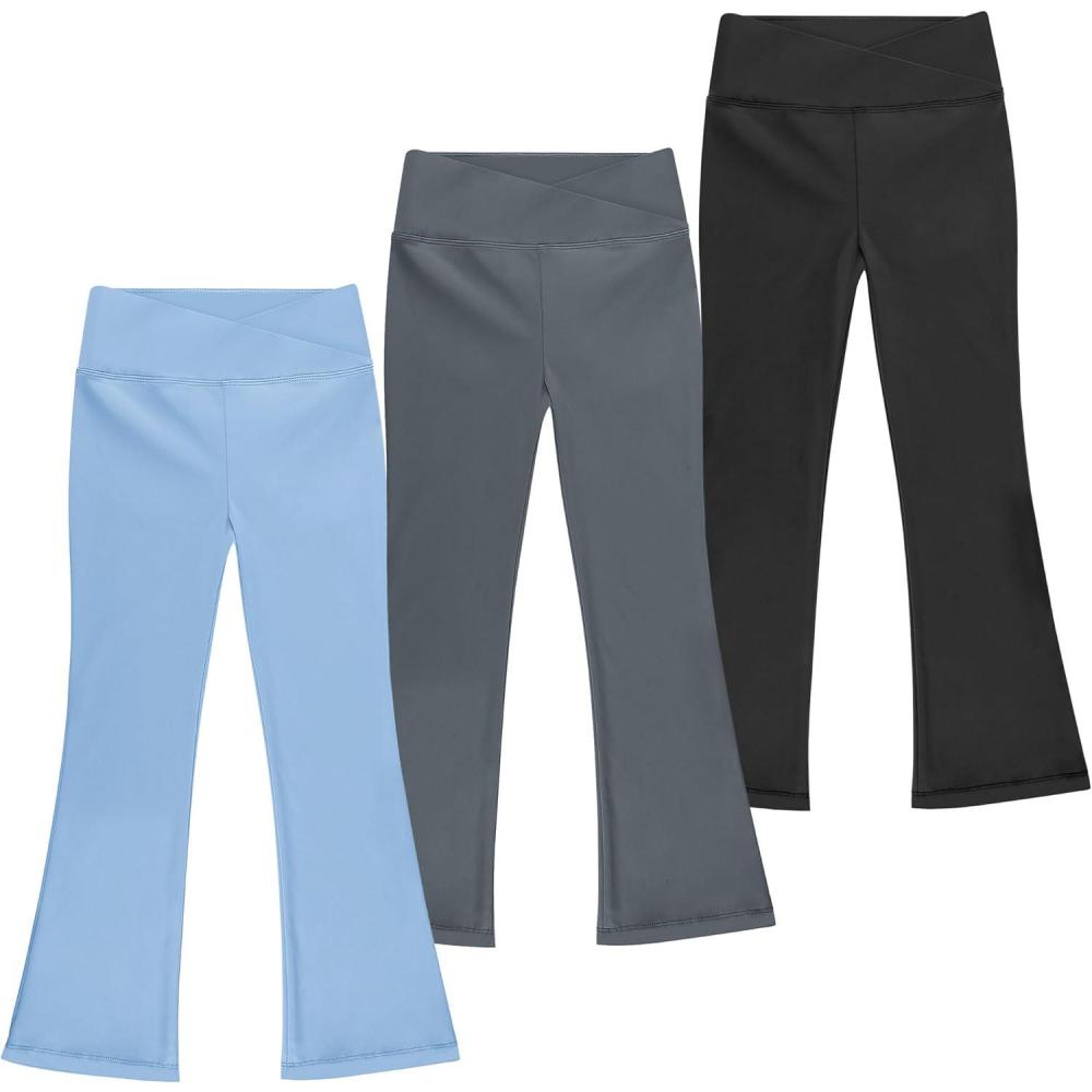 BIG ELEPHANT Girls Flare Leggings with Pockets, Crossover High Waist Bell Bottom Yoga Pants for Dance & Everyday Wear(Black+dark Gray+blue)