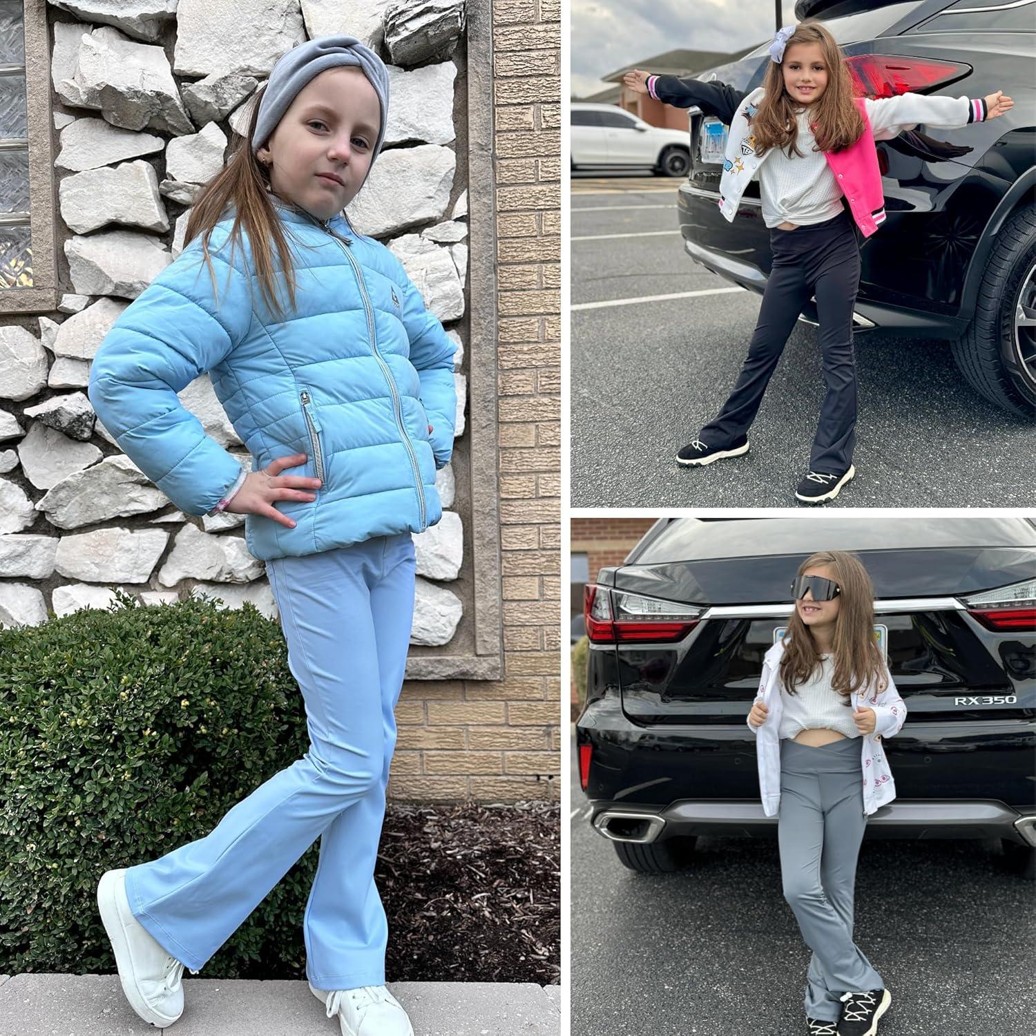 BIG ELEPHANT Girls Flare Leggings with Pockets, Crossover High Waist Bell Bottom Yoga Pants for Dance & Everyday Wear(Black+dark Gray+purple)