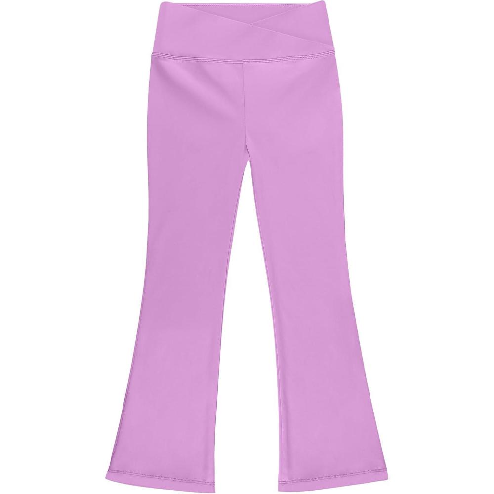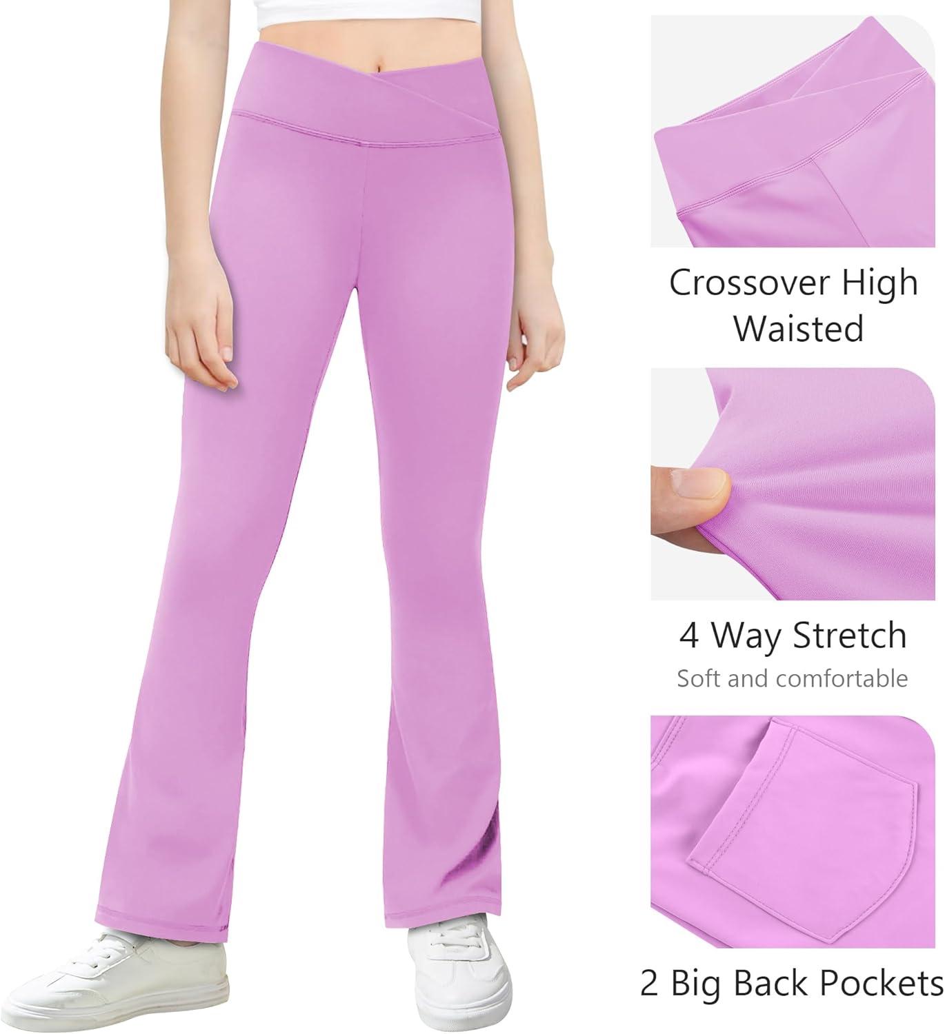 BIG ELEPHANT Girls Flare Leggings with Pockets, Crossover High Waist Bell Bottom Yoga Pants for Dance & Everyday Wear(Purple)