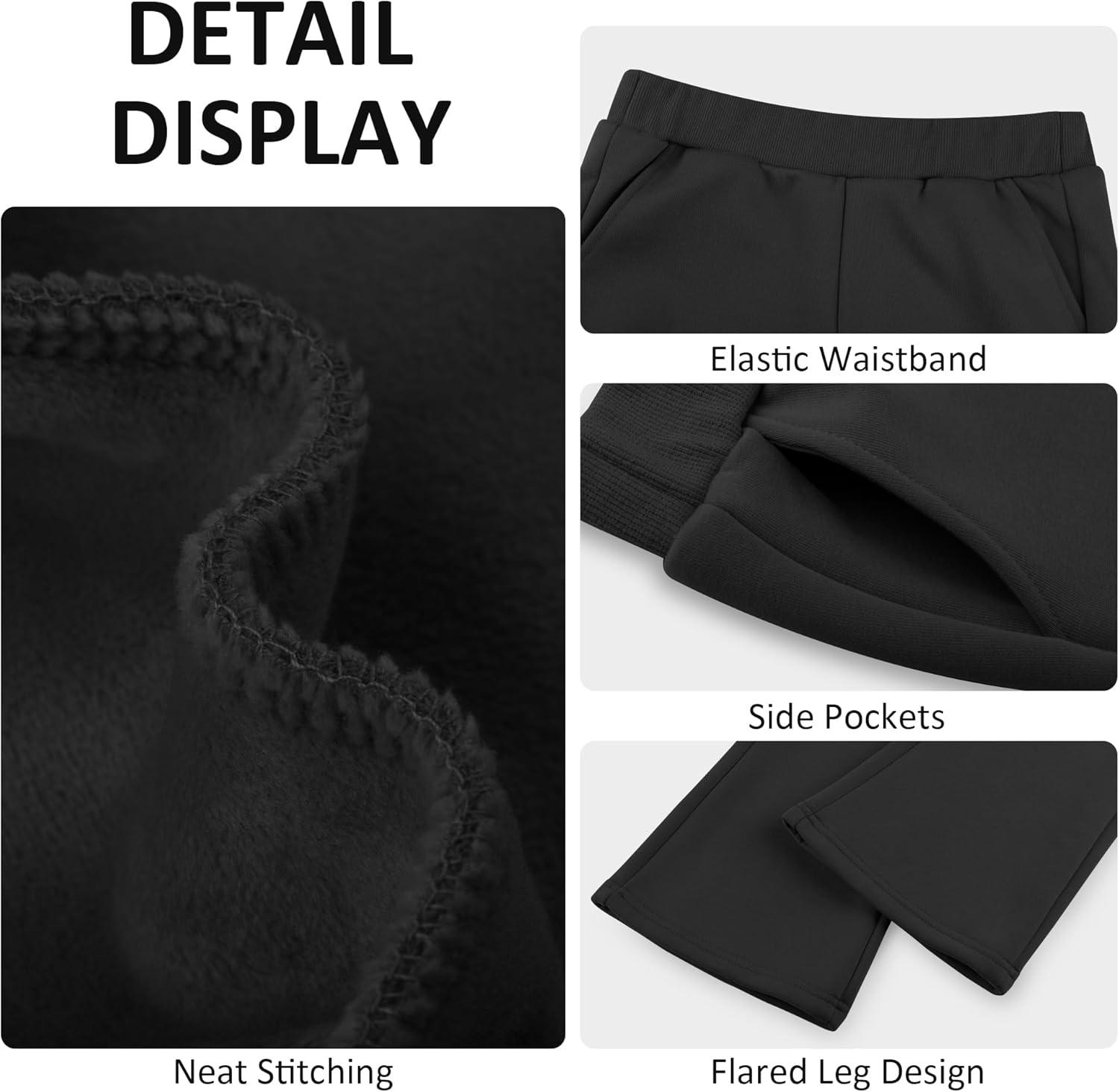 BIG ELEPHANT Girls Fleece Flared Dress Pants – Soft Bell Bottom Uniform Pants with Pockets for School or Daily Wear(Black)