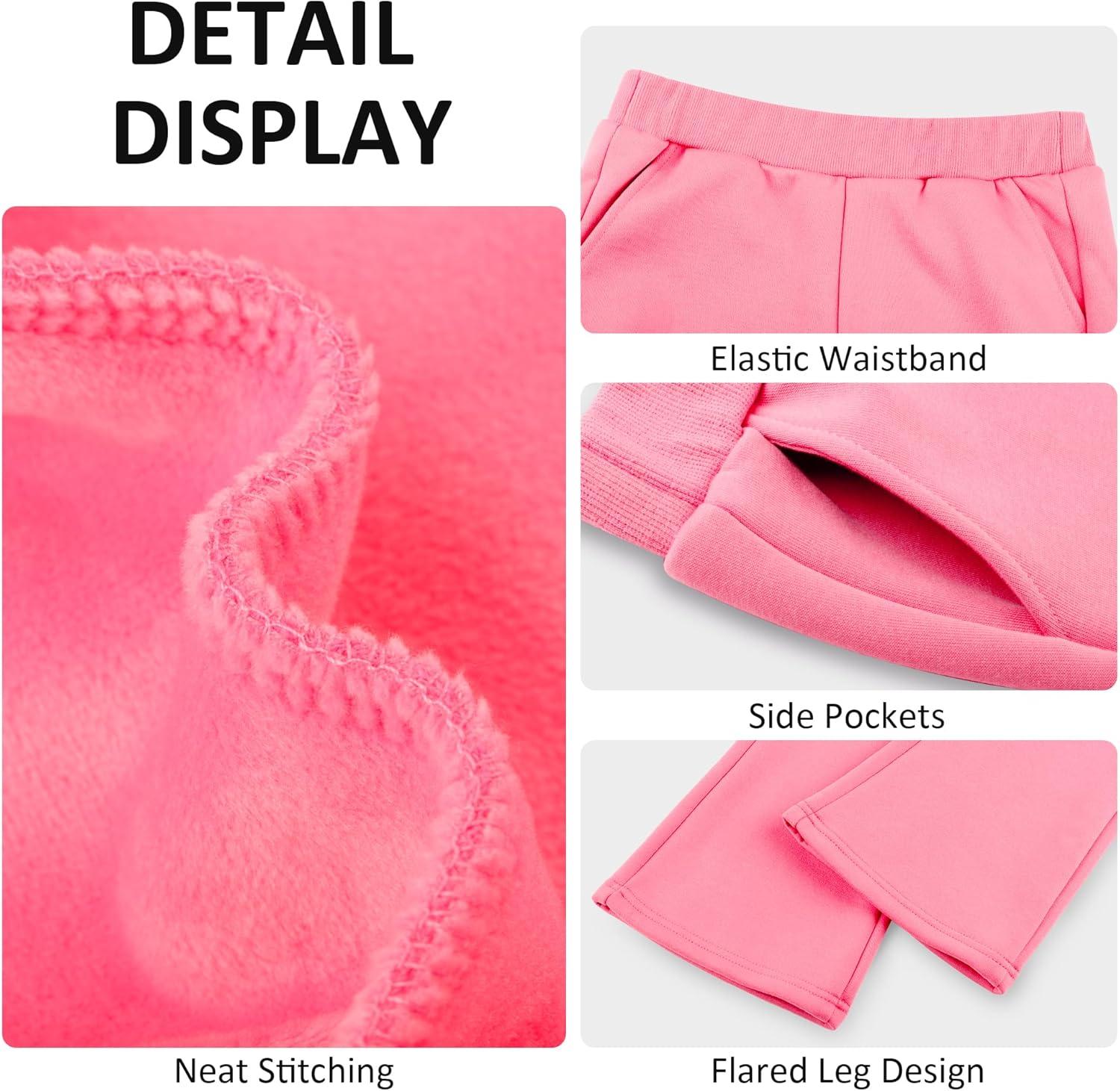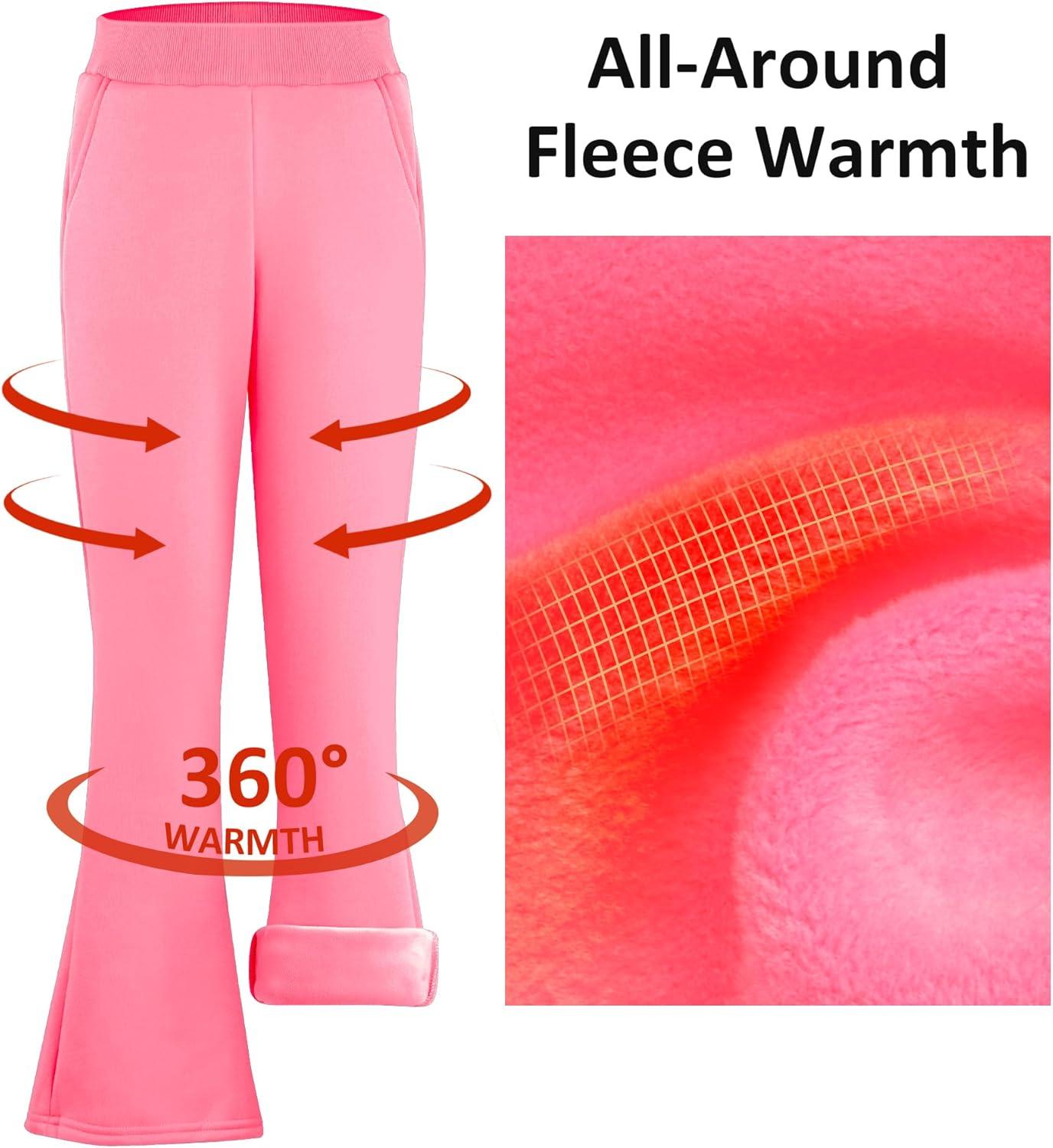 BIG ELEPHANT Girls Fleece Flared Dress Pants – Soft Bell Bottom Uniform Pants with Pockets for School or Daily Wear(Pink)