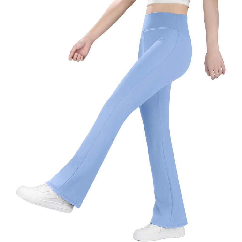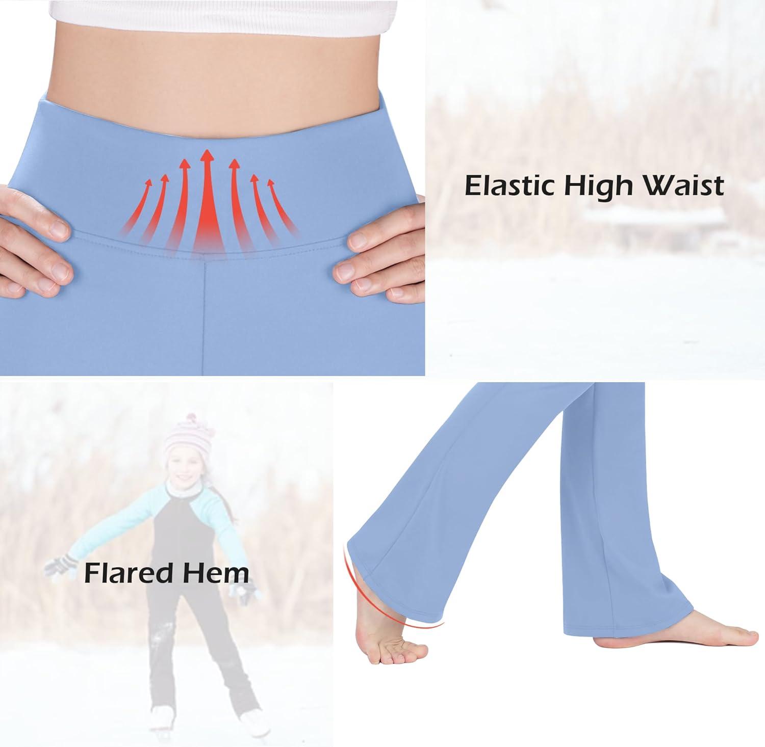BIG ELEPHANT Girls Fleece Lined Flare Leggings – Warm Winter High Waisted Athletic Bell Bottom Pants for Kids(Blue)