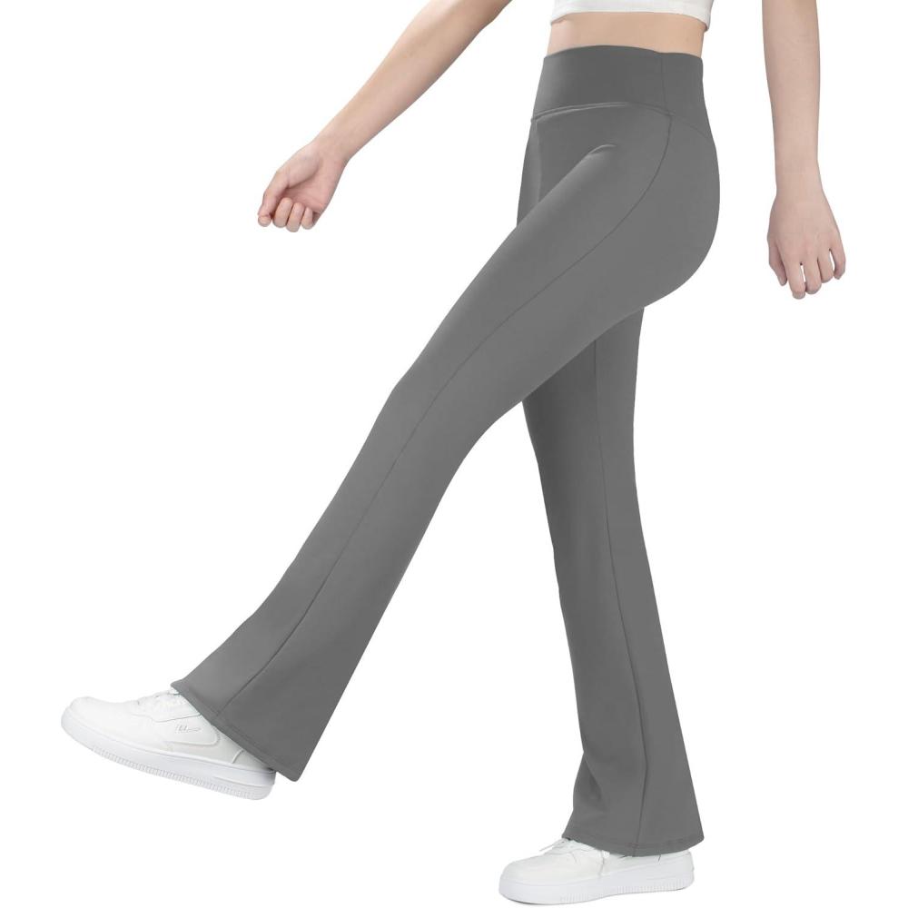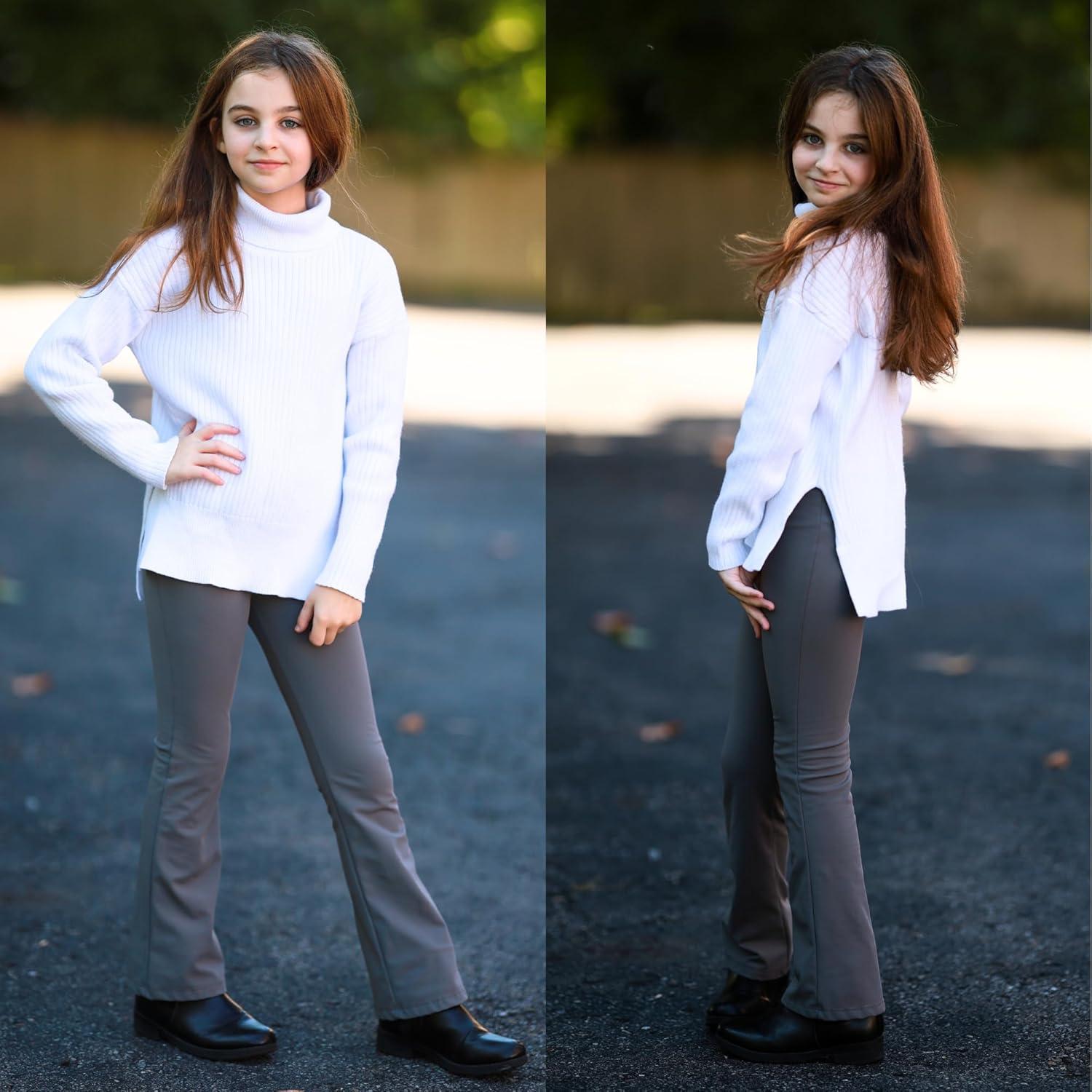 BIG ELEPHANT Girls Fleece Lined Flare Leggings – Warm Winter High Waisted Athletic Bell Bottom Pants for Kids(Dark Gray)