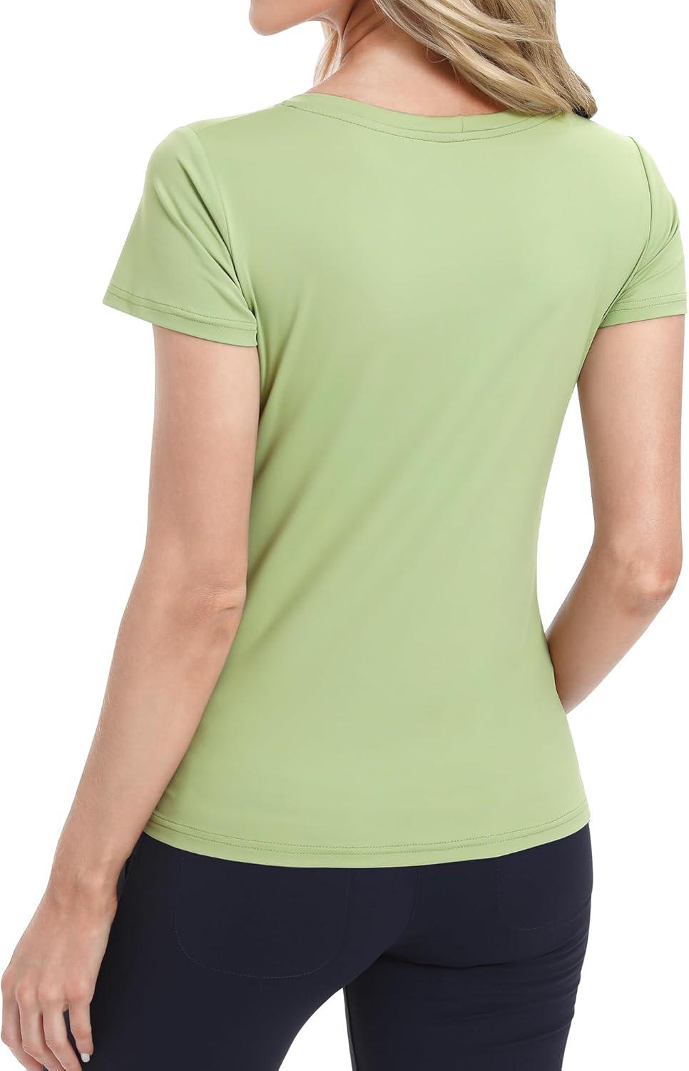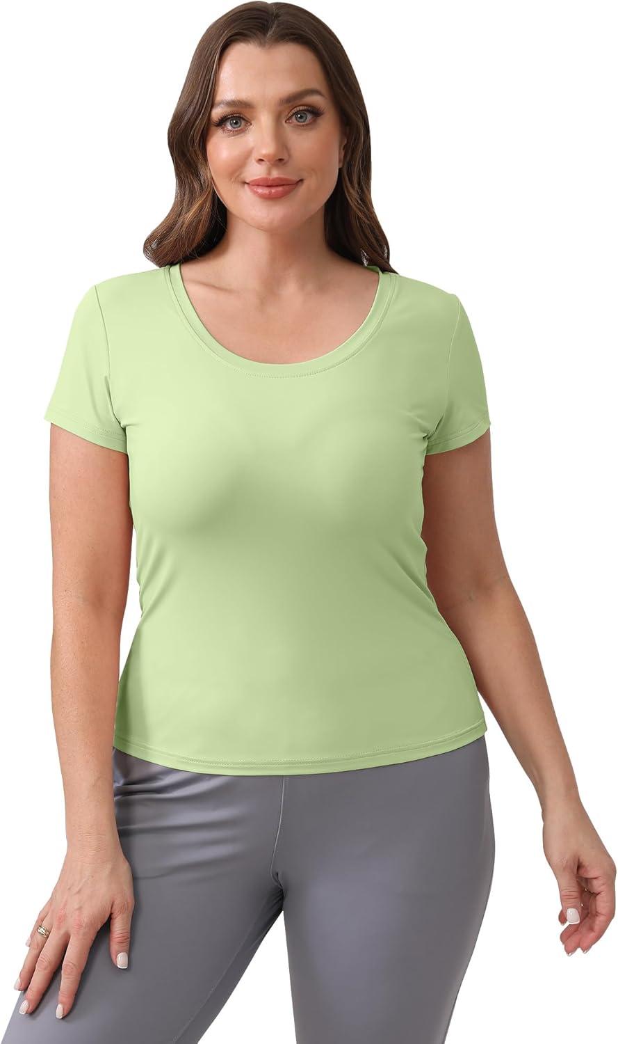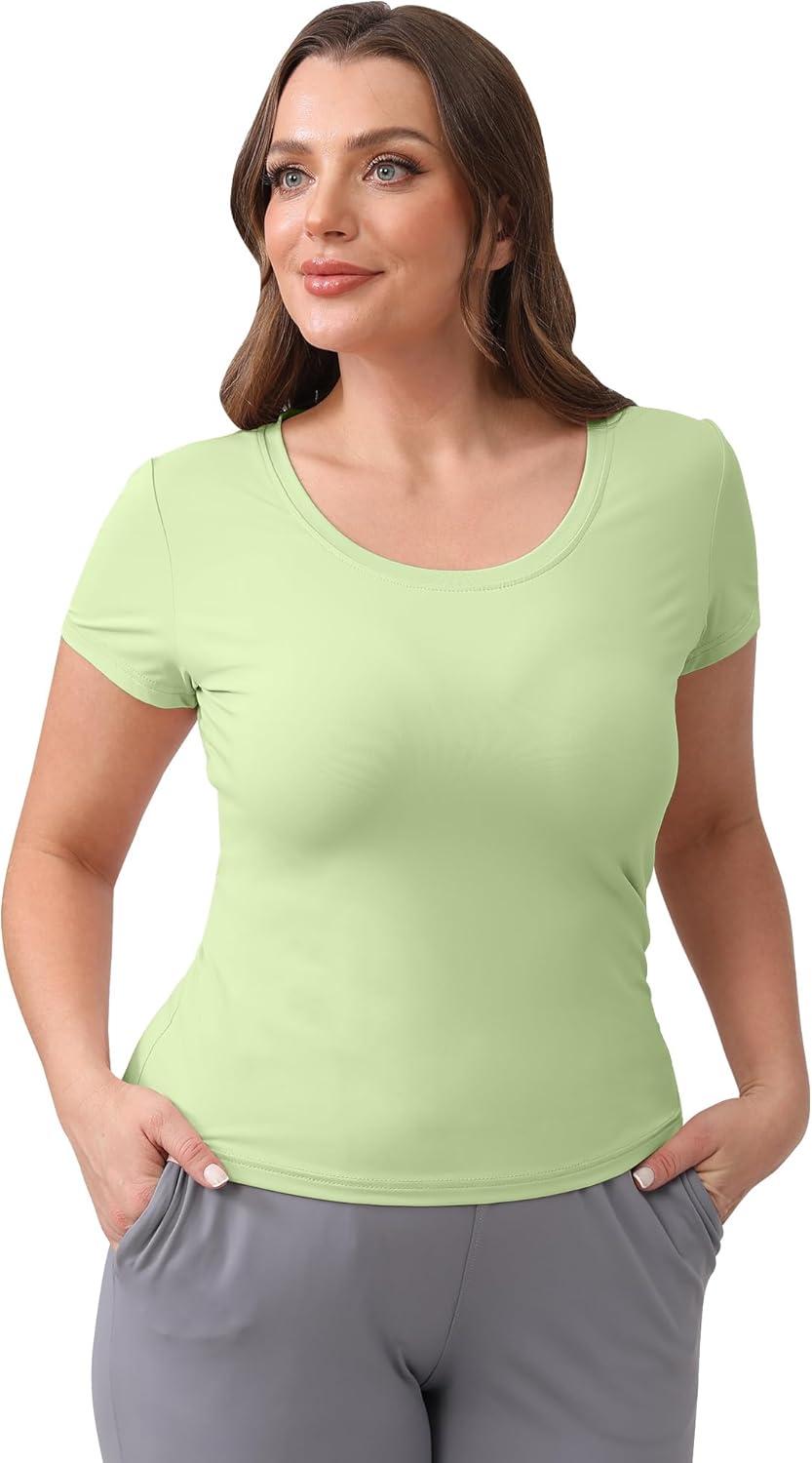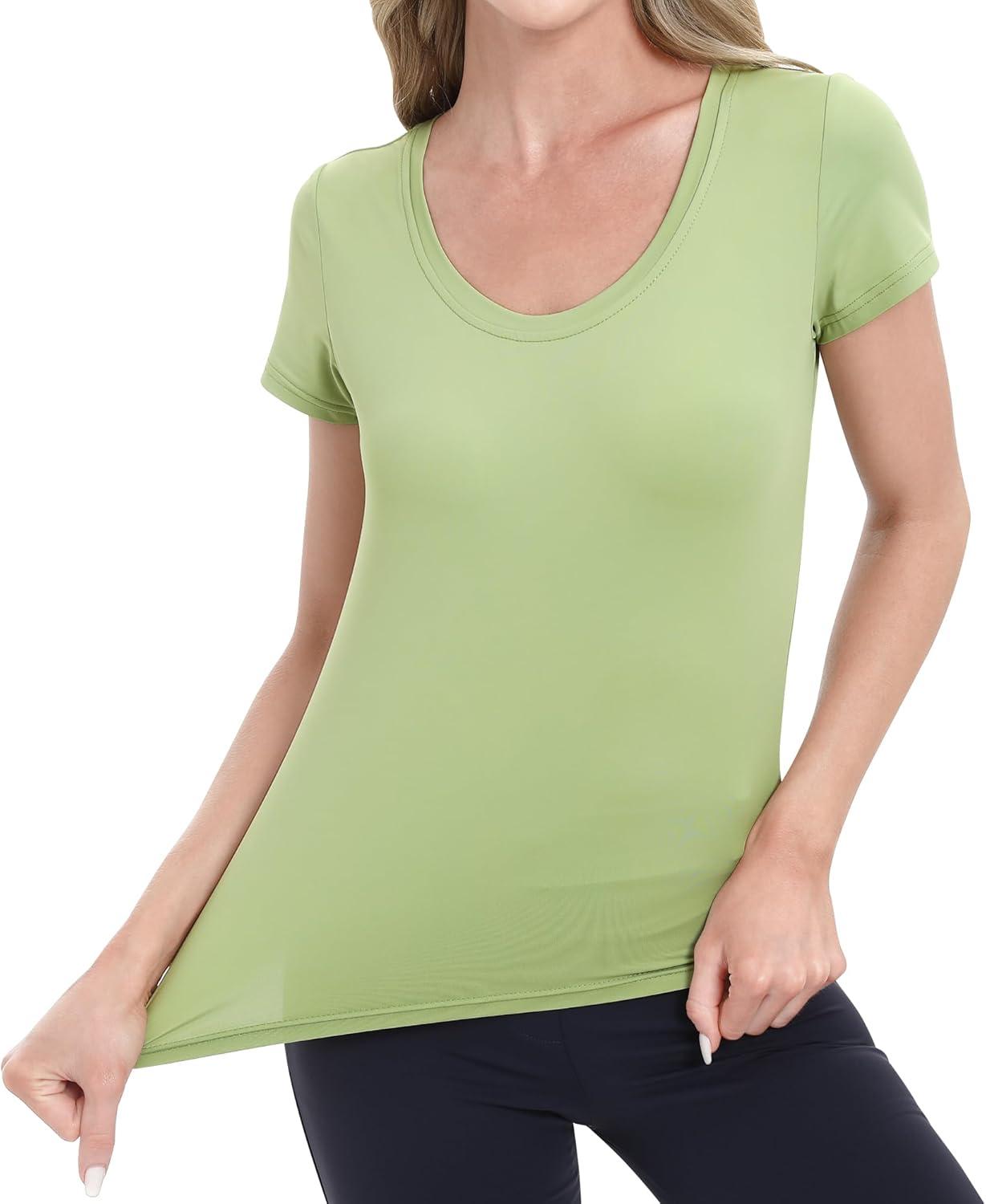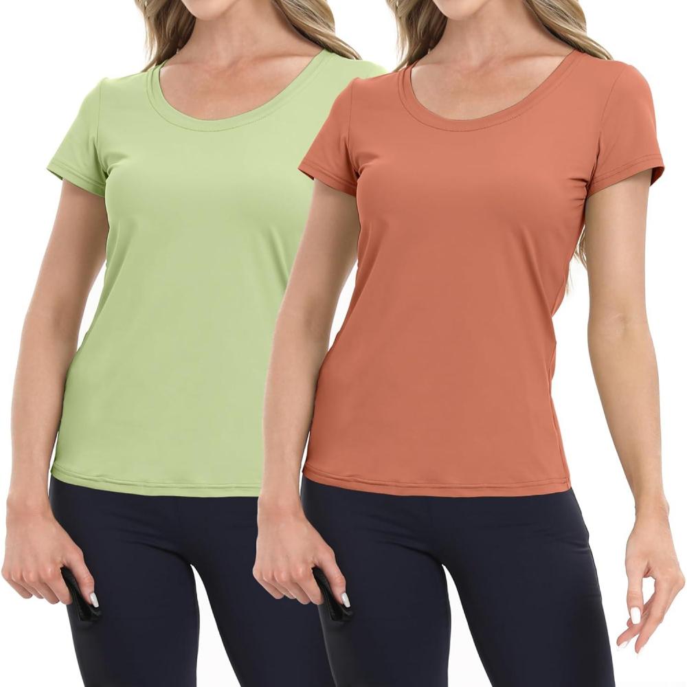 BIG ELEPHANT Womens 2 Pack Short Sleeve Pajama Shirts Sleep Tops Crew Neck Lounge T-Shirts for Women Home and Casual(Caramel Orange and Matcha Green)