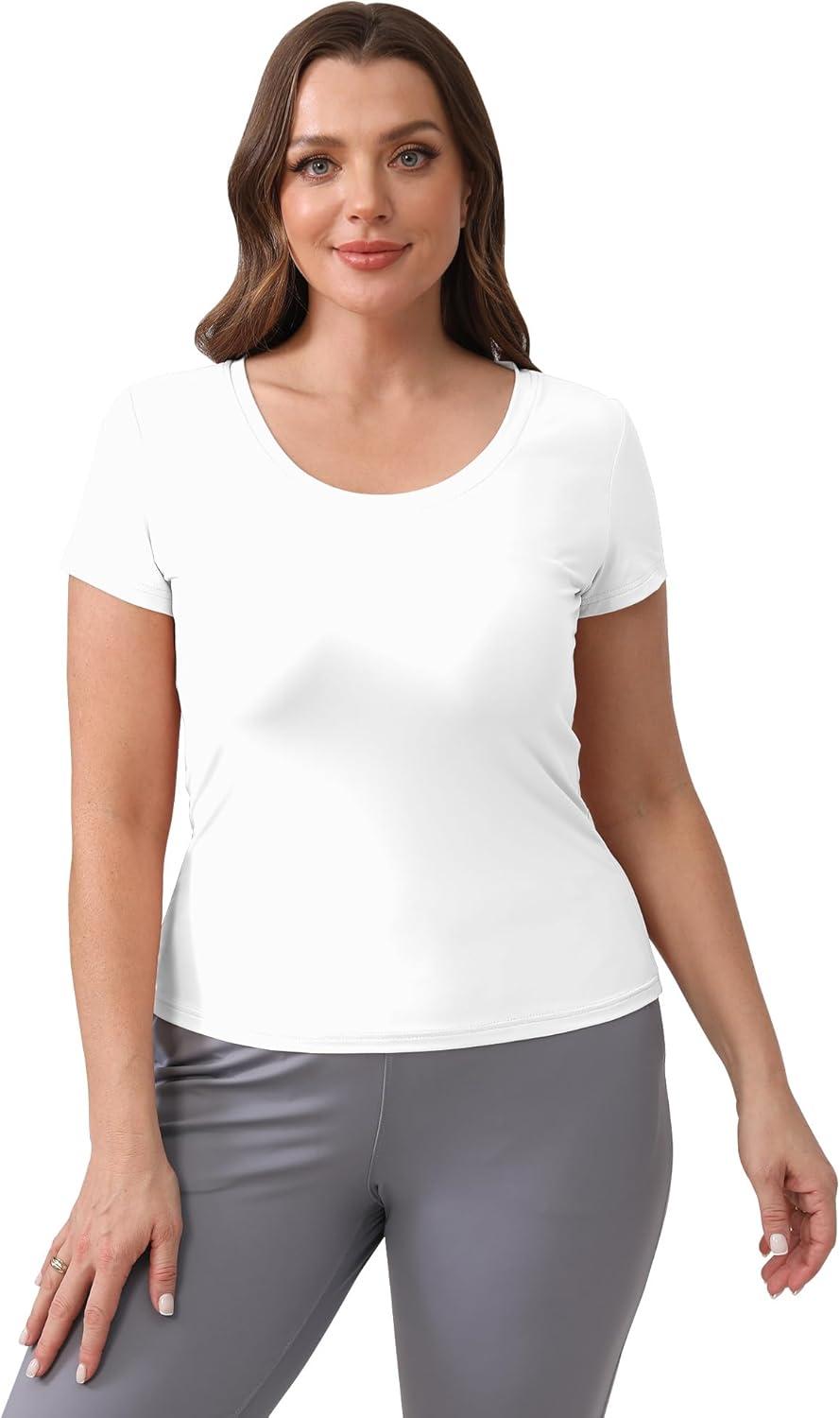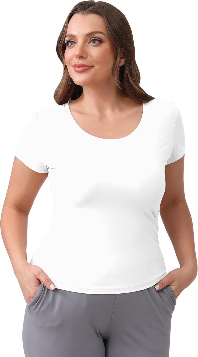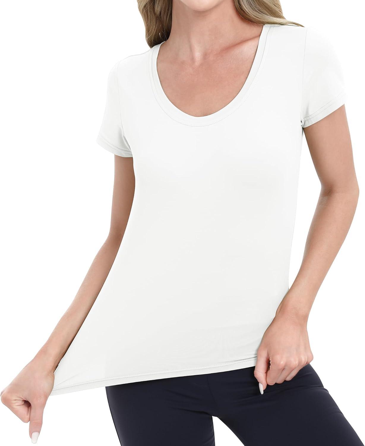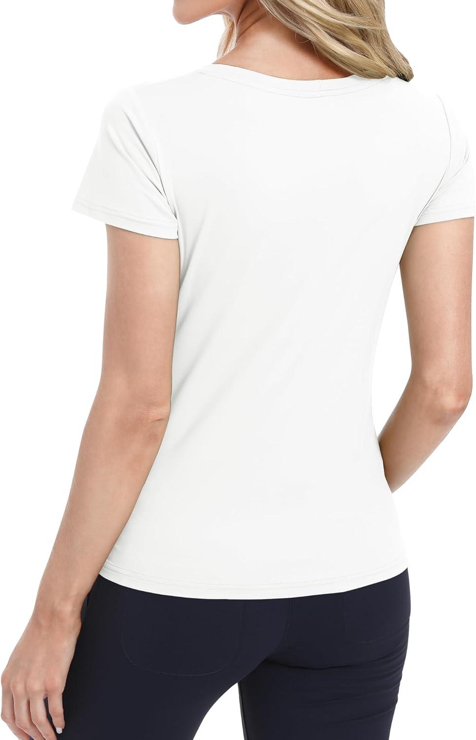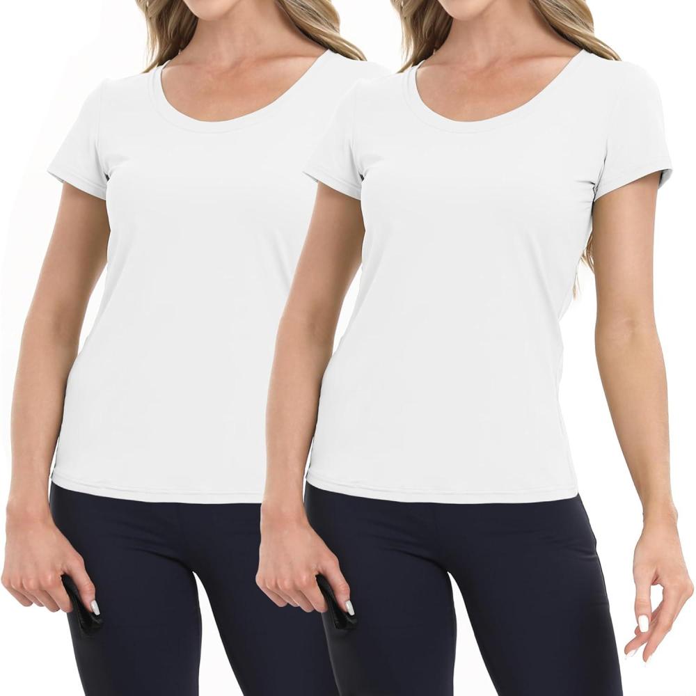 BIG ELEPHANT Womens 2 Pack Short Sleeve Pajama Shirts Sleep Tops Crew Neck Lounge T-Shirts for Women Home and Casual(White and White)